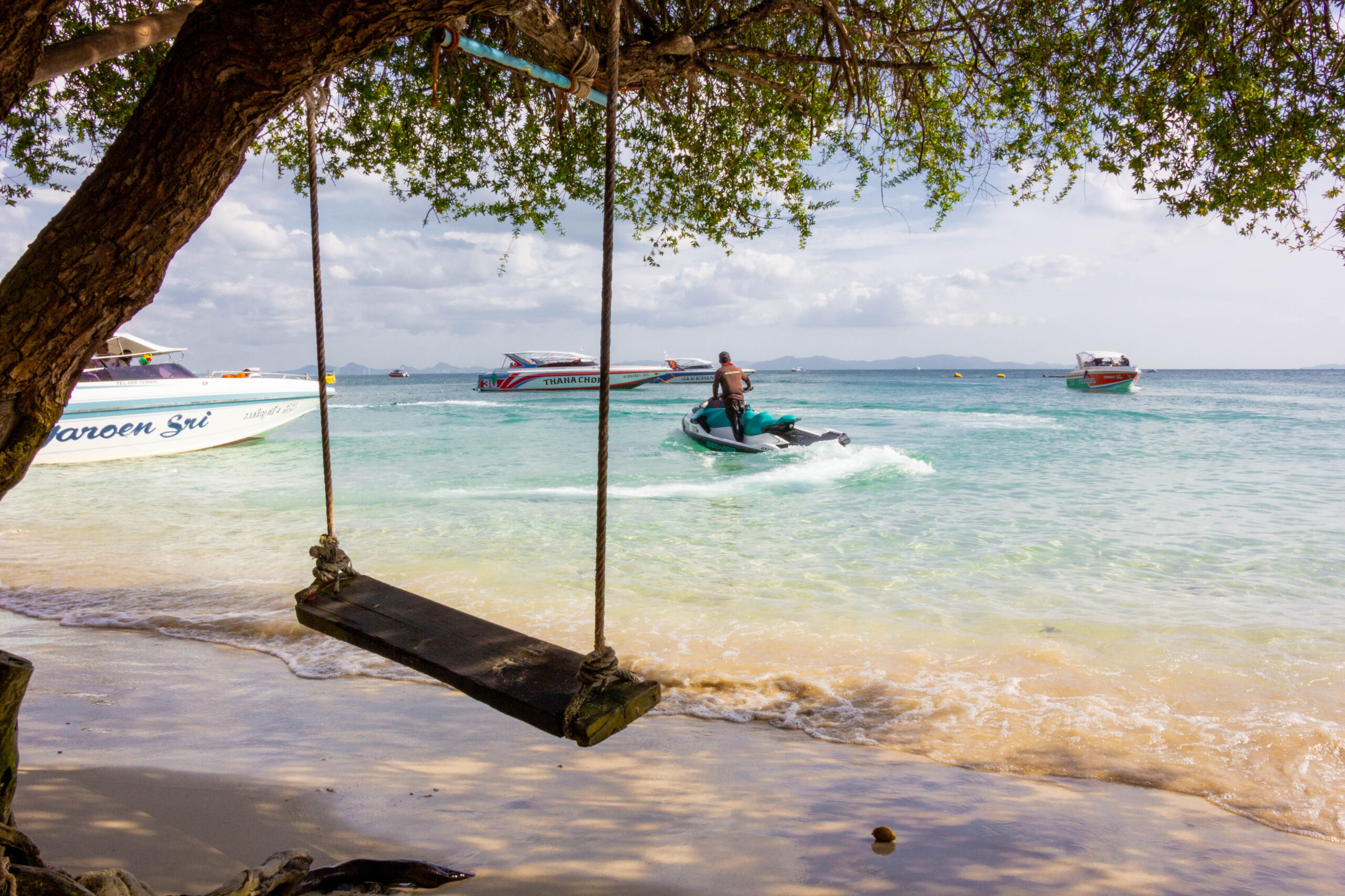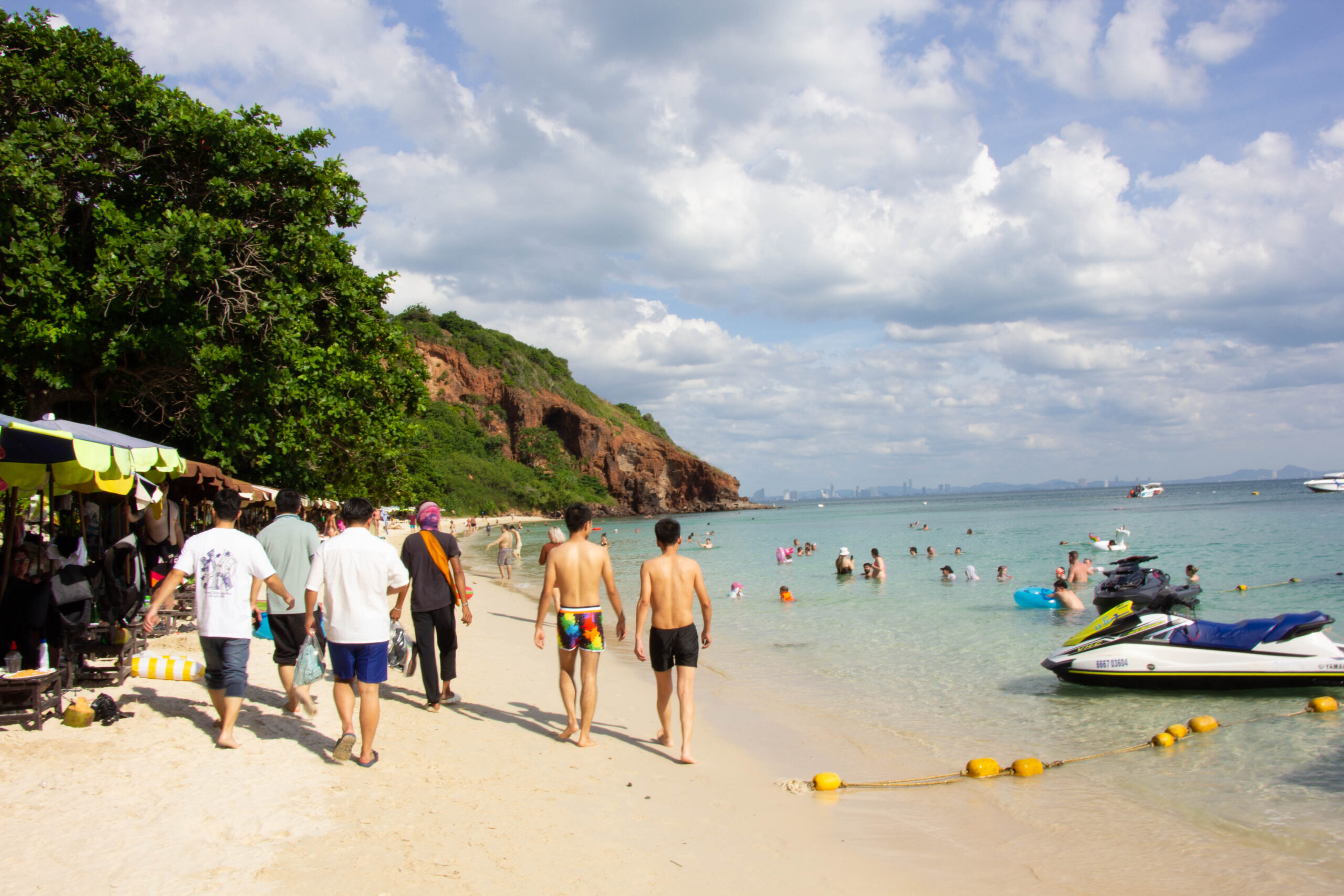 Nual Beach is located on the southernmost tip of Koh Larn. This small, 250-meter-long beach is known for its quiet, pleasant atmosphere, offering a feeling of a private cove thanks to the surrounding trees and rock formations. It stands out with its signature soft, cream-colored sand and generally clear waters.